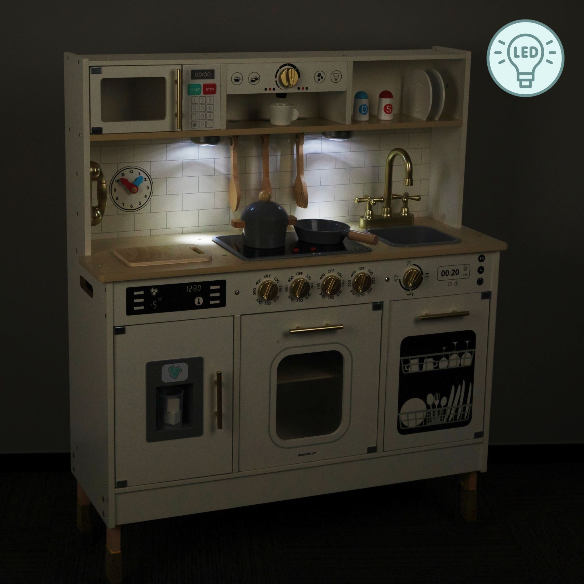 Interaktivt XXL trækøkken til børn med tilbehør og LED-belysning - to-plan