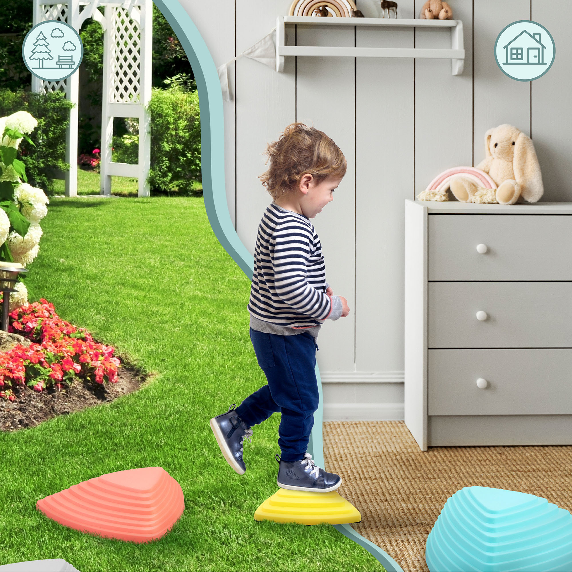 Den skridsikre overflade på sansestenene forhindrer smertefulde fald for børn og giver deres fødder et fremragende greb. Takket være den holdbare, men lette plast er sættet perfekt til de smås leg og balanceøvelser og støtter deres motoriske udvikling på en sikker måde.