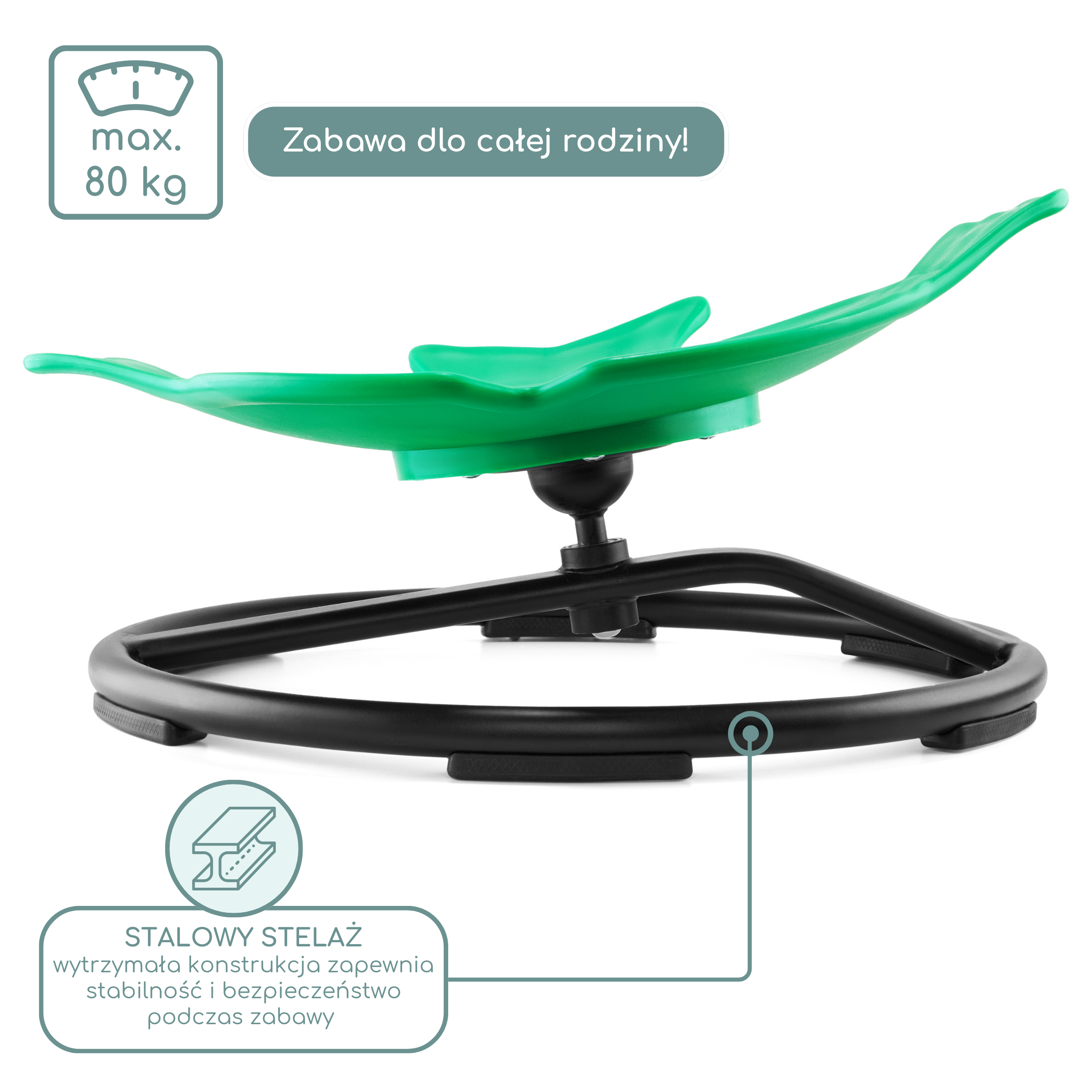 Det eneste, du skal gøre for at få det sjovt, er at læne dig tilbage og flytte din kropsvægt til den ønskede side. Det skyldes, at sædet på minikarrusellen hælder i den rigtige vinkel. Det er op til barnet at bestemme antallet og hastigheden af omdrejninger samt rotationsretningen. For småbørn, der endnu ikke mestrer balancen, kan karrusellen sættes i gang ved at skubbe fra jorden med fødderne.