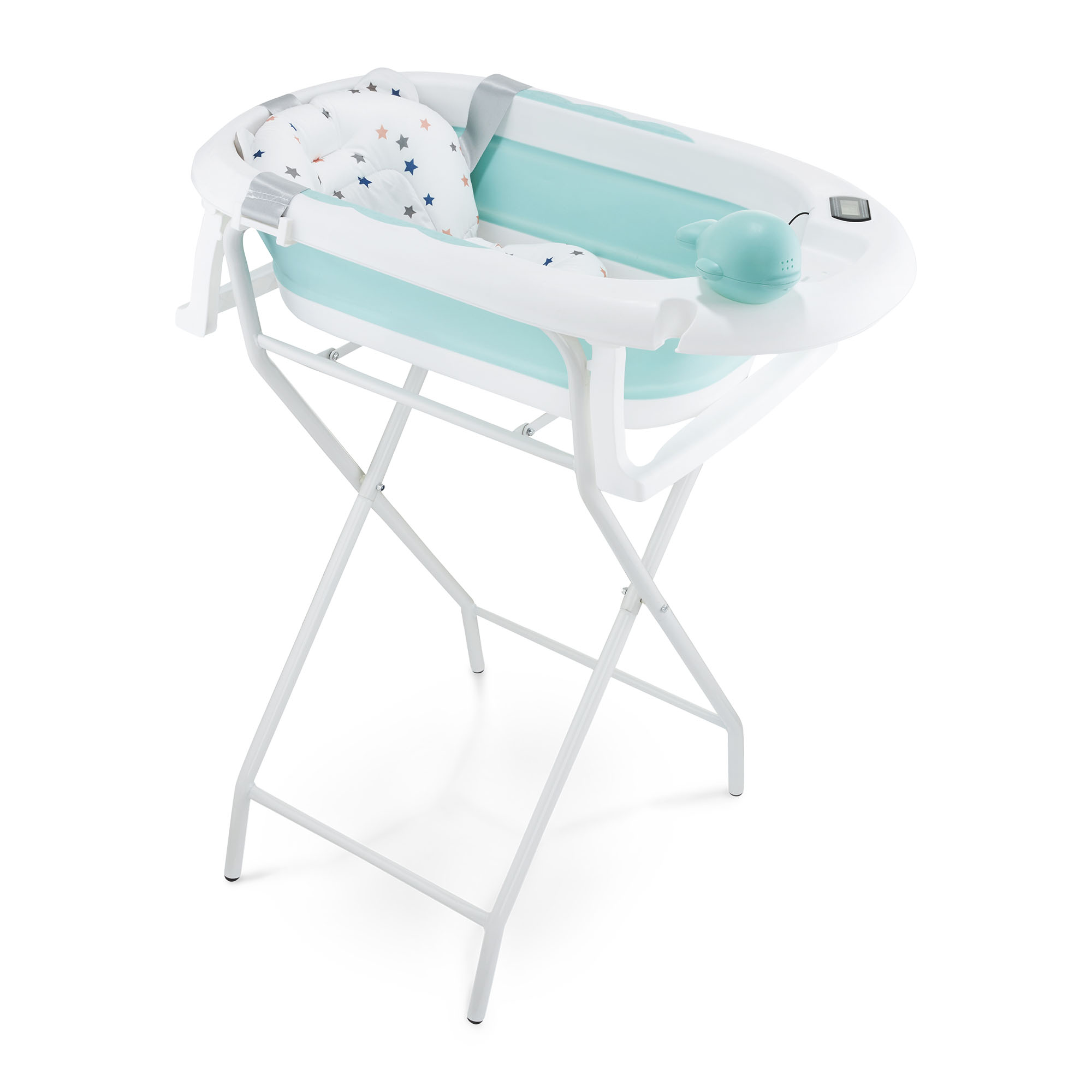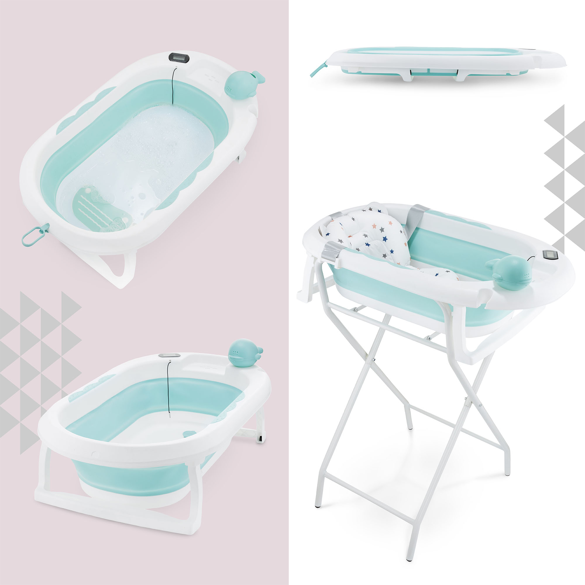 Sammenklappeligt babybadekar med termometer, indsats og stativ - mintfarve