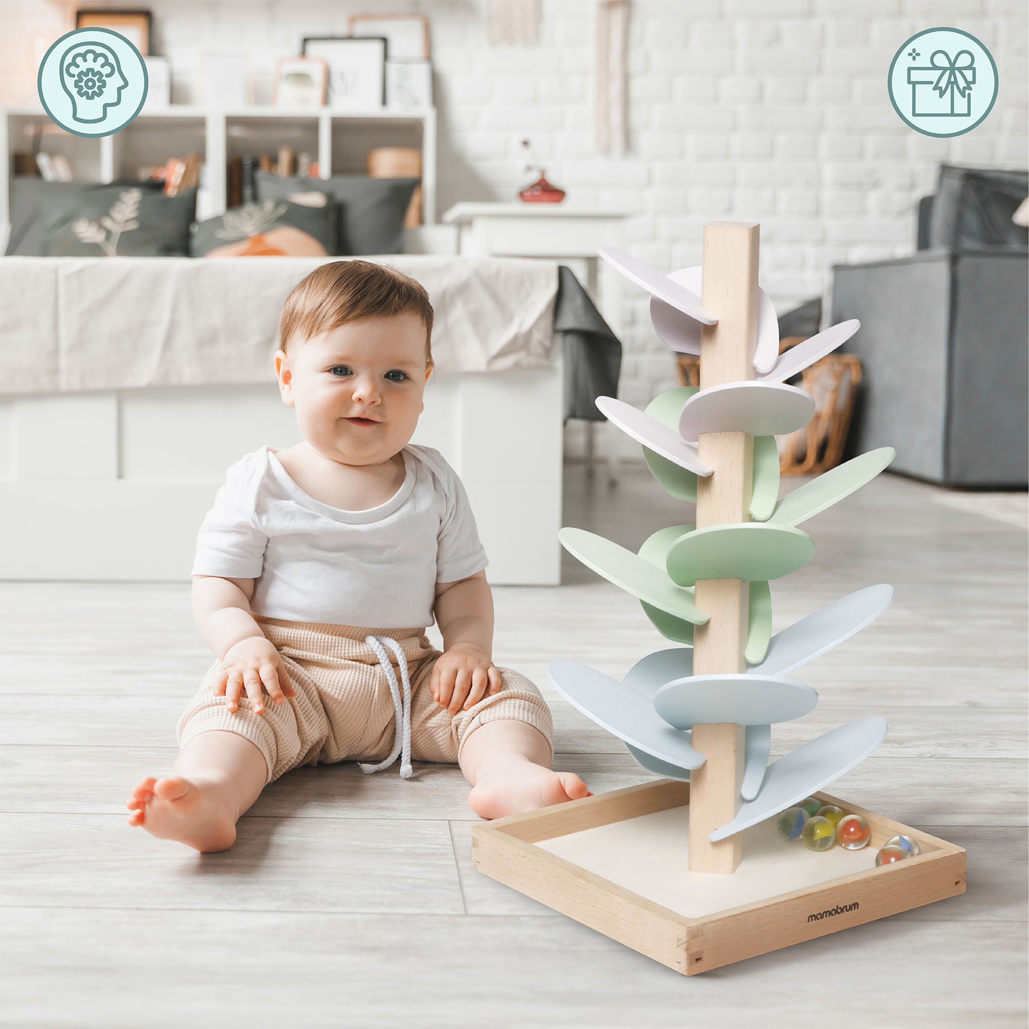 Trætræet bliver en unik dekoration på børneværelset, som bringer ro og et strejf af magi ind i rummet. De pastelfarvede blade glæder med deres blødhed, mens de gennemsigtige kugler med en farvet midte giver en unik visuel effekt til helheden. Legetøjet træner tålmodighed, koncentration og koordination, samtidig med at det har en beroligende effekt, der får barnet til at falde til ro. Det er den ideelle gave, der kombinerer udvikling med kreativ og sjov leg.