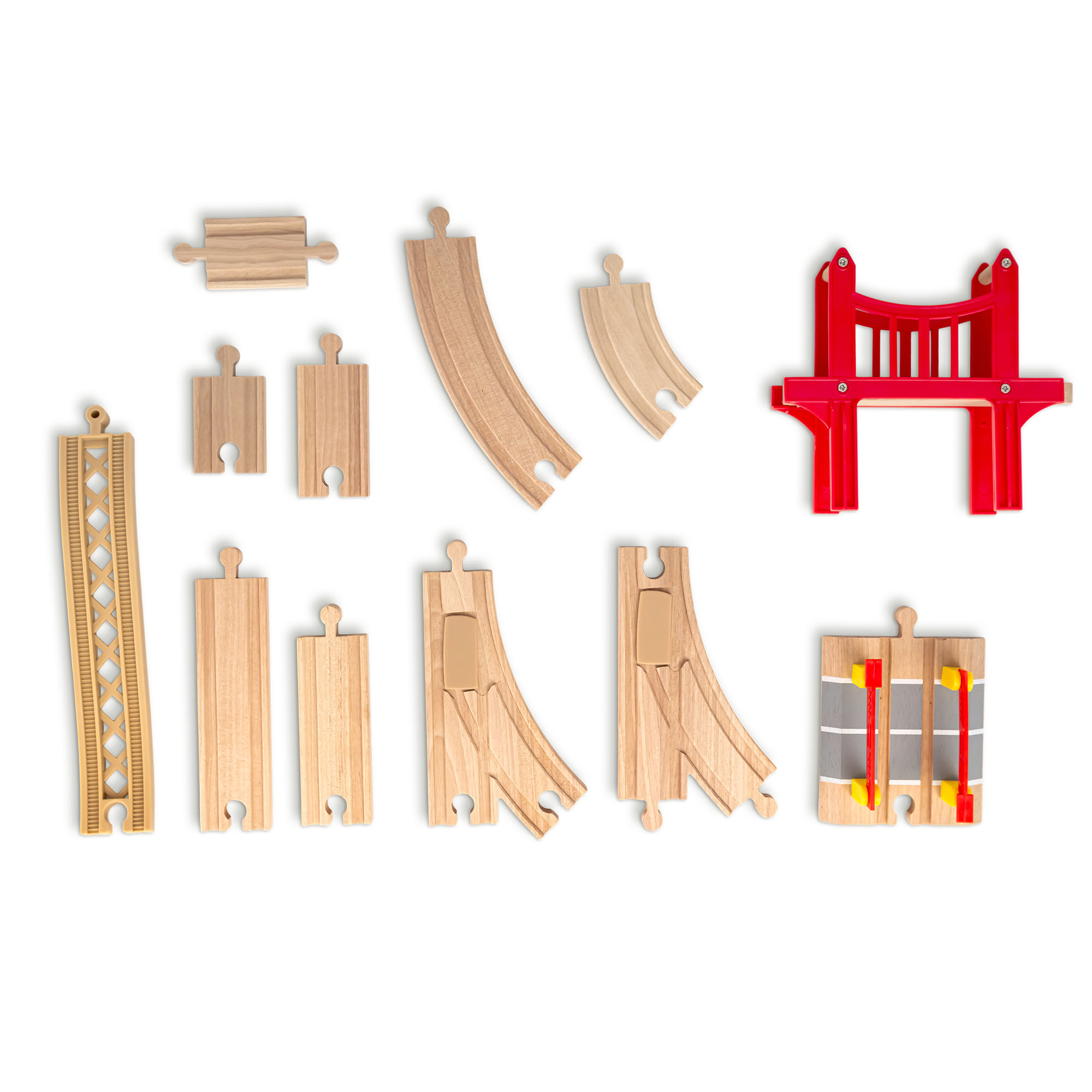 Broer med ramper og jernbanetunneler tilføjer dynamik og karakter til hele settet. Børn kan se toget køre ind på broen, krydse viadukten og derefter forsvinde ind i tunnelen. Dette spændende element af leg gør hver tur unik . Derudover hjælper broer og tunneler med at udvikle den rumlige fantasi og undervise i ruteplanlægning.