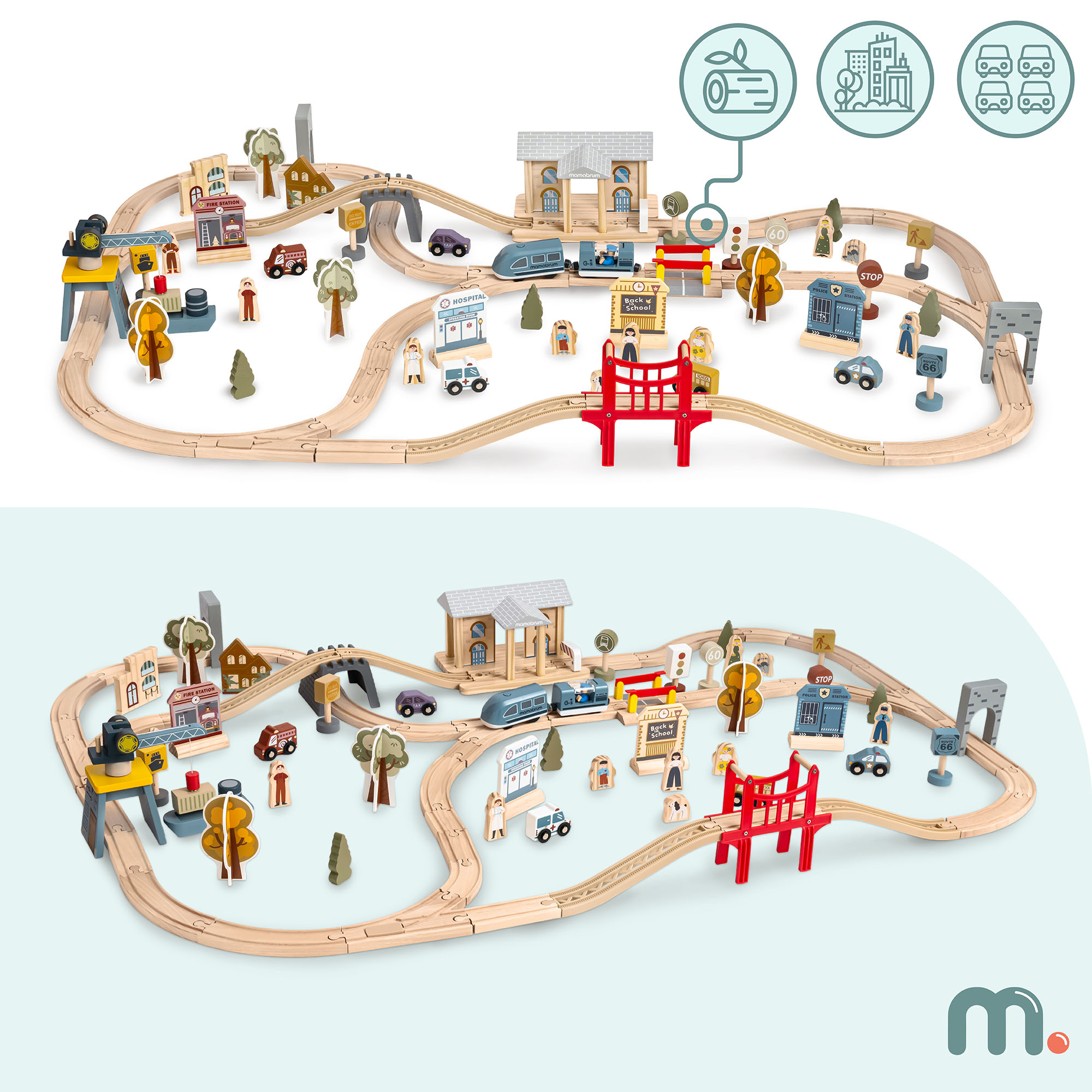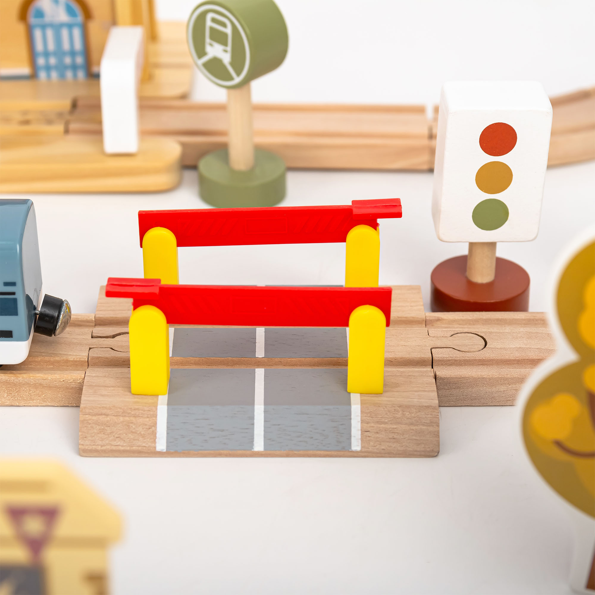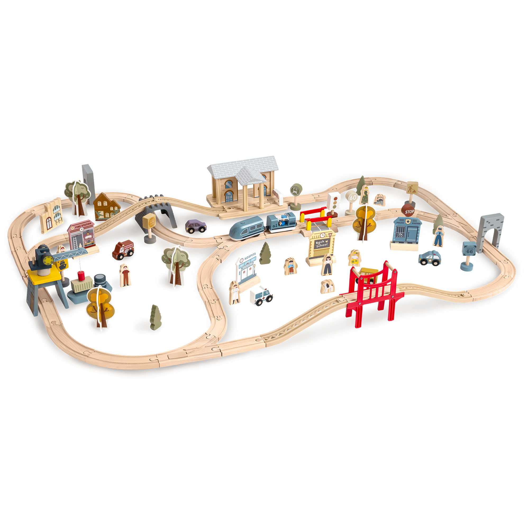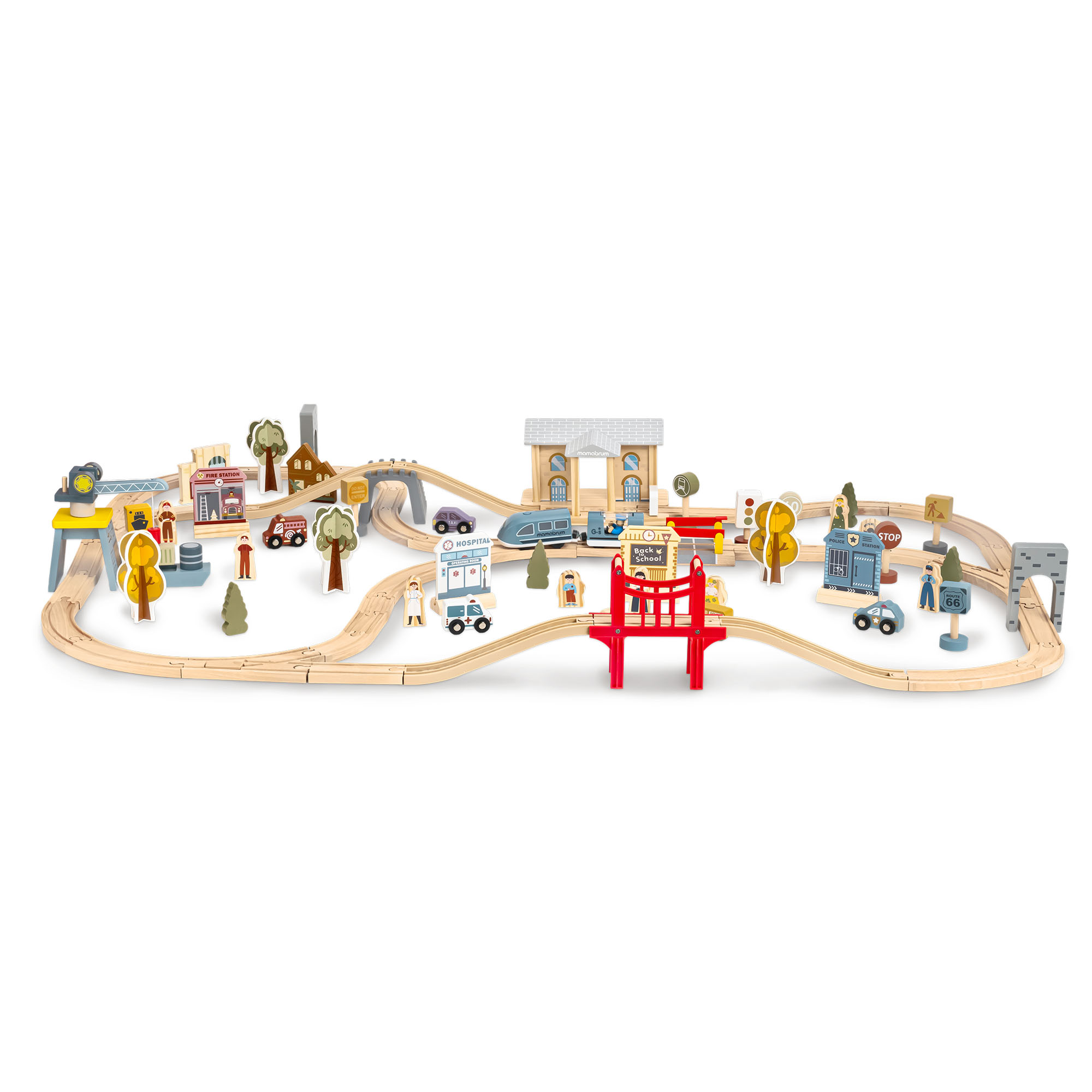 Transporter dit barn til en travl by fuld af eventyr! Dette trætogsæt er et omfattende sæt , der imponerer med sit antal dele, kvaliteten af udførelsen og opfindsomheden.