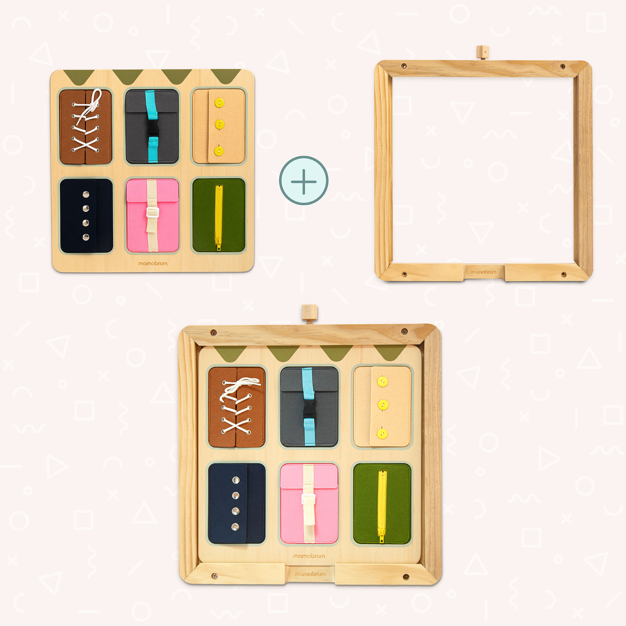 Hver gang et barn åbner en spænde, lyner en lynlås eller træder et snørebånd i, laver de præcise, gentagne bevægelser , der perfekt udvikler motoriske færdigheder og hånd-øje-koordination. Disse små færdigheder er fundamentet for senere udfordringer – fra at tegne og skrive til at klæde sig på selvstændigt eller bruge bestik. Brættet bliver ikke kun et sted for leg, men også et værksted for færdigheder og tålmodighed , hvor hver bevægelse bringer barnet tættere på deres næste succes.