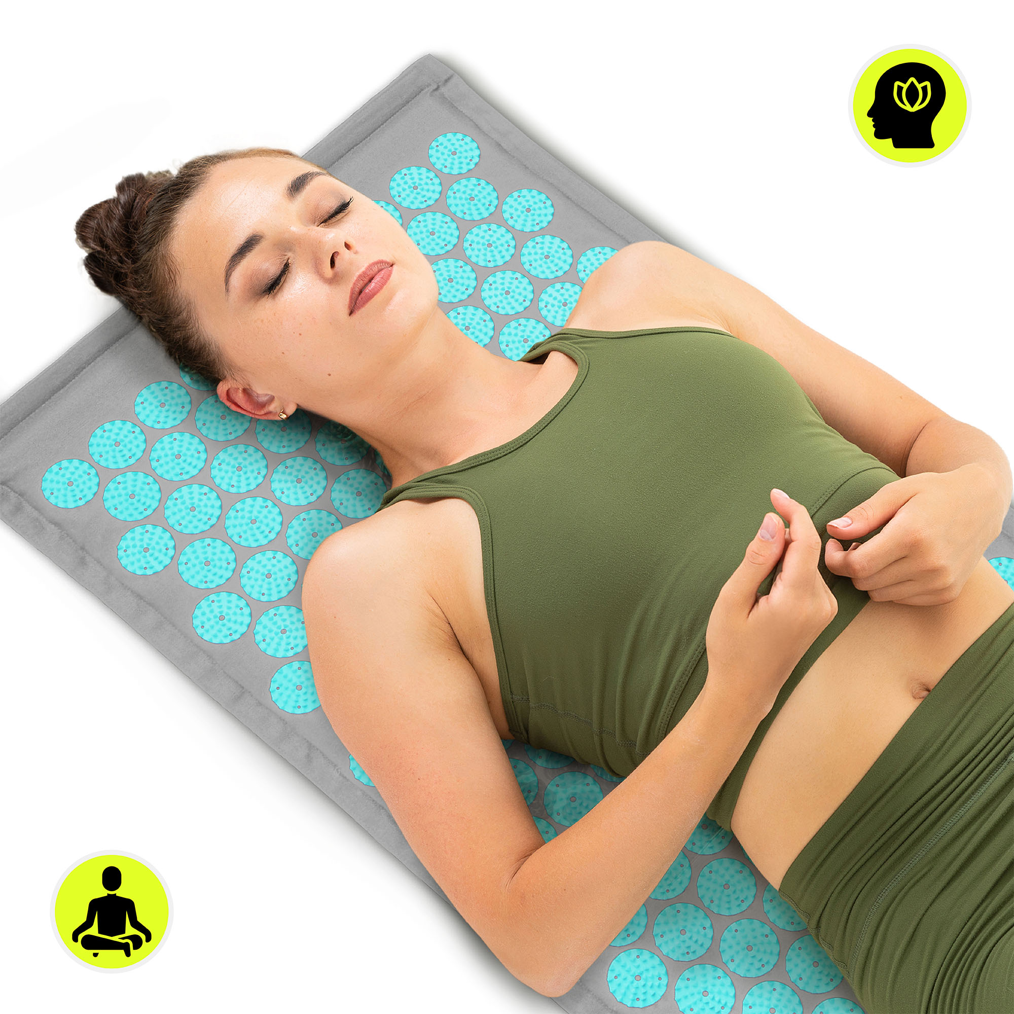 ECO akupressurmåtte i linned med kokosfibre og boghvedepude – 68 cm HyperMotion grå-mint